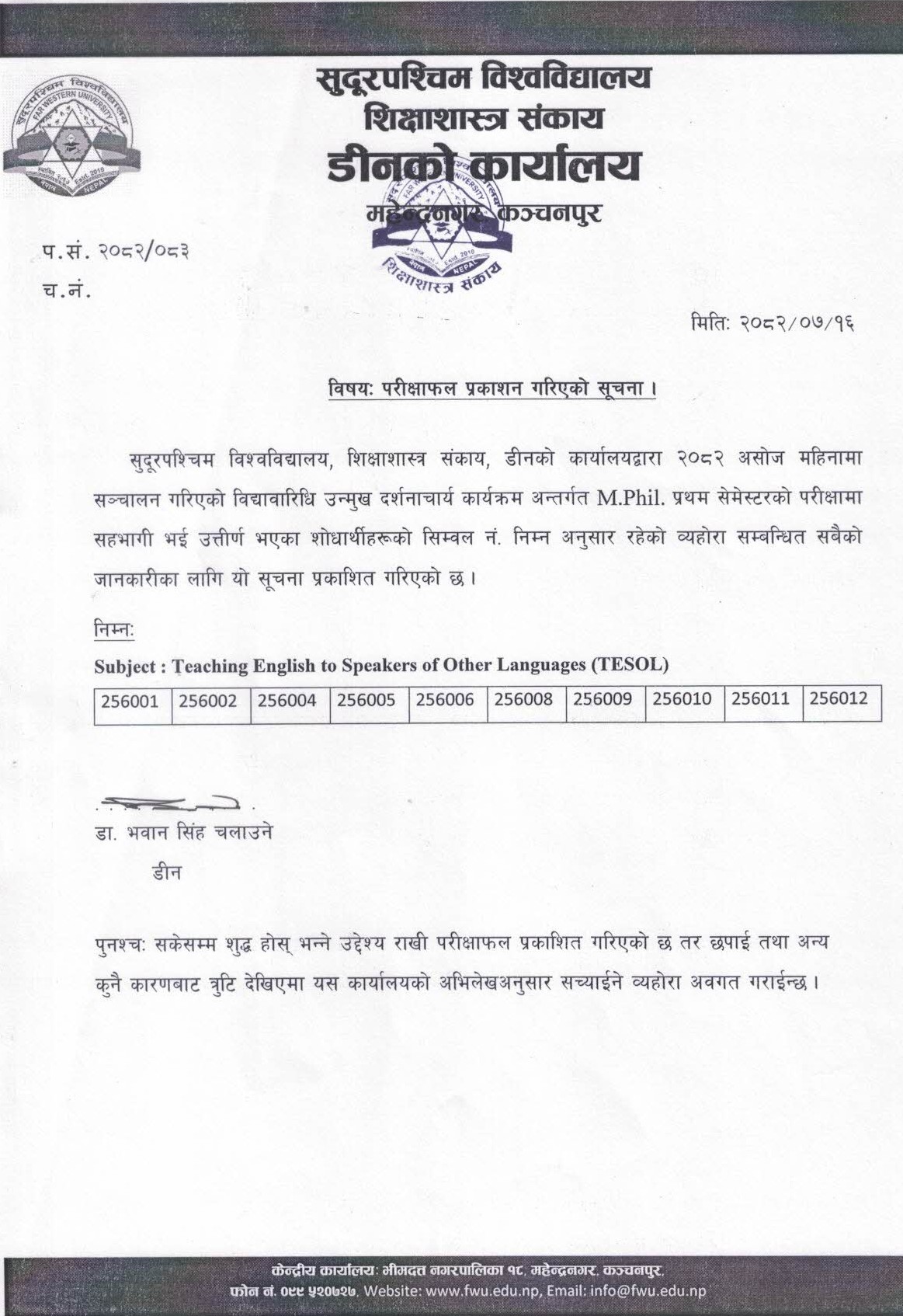 MPhil/MPhil Leading to PhD First Semester Exam Result 2025
