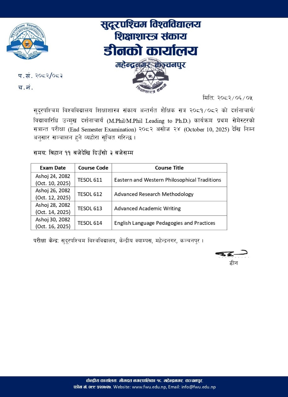 MPhil/MPhil Leading to PhD कार्यक्रम प्रथम सत्रको परीक्षा स्थगन सम्बन्धी सूचना
